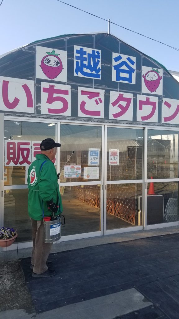 営業終了後の殺菌消毒 越谷いちごタウンでは、営業終了後に殺菌消毒を行っております。 皆様に安心していちご狩りを楽しんでいただける環境づくりに努めてまいります。
