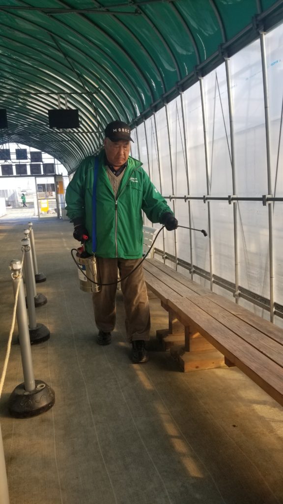 越谷いちごタウンでは、営業終了後に殺菌消毒を行っております。